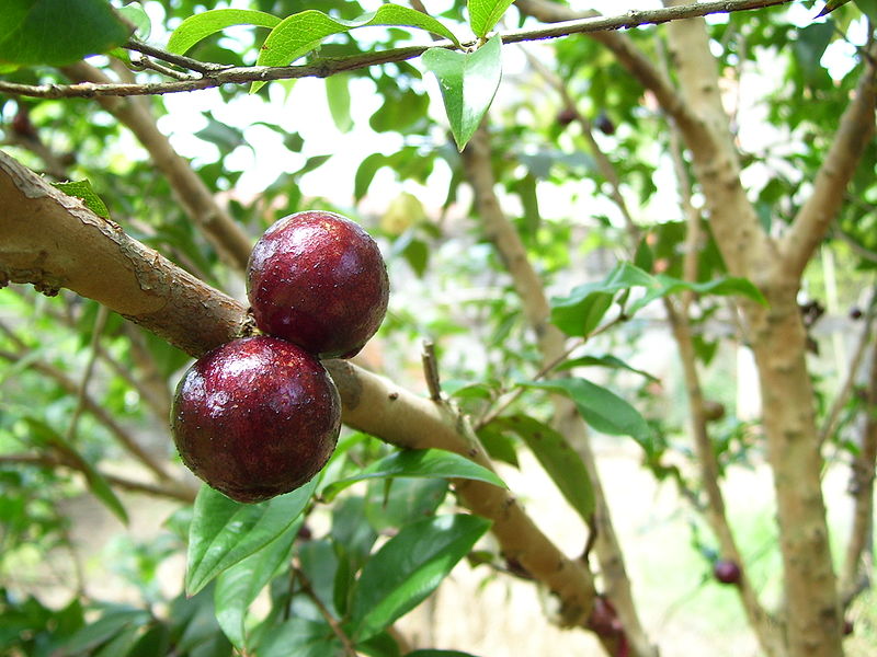 Ziziphus jujubaFrutos en drupa globosa con aspecto de aceituna de unos 2-3 cm de longitud, aunque existen variedades injertadas que producen frutos de 5-6 cm de longitud. Son de color rojizo en la madurez. Su pulpa es harinosa, comestible y dulzona.